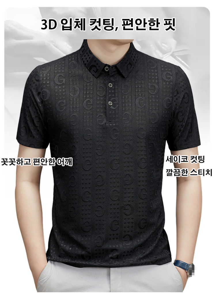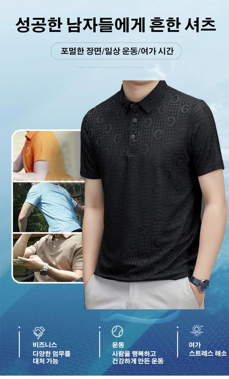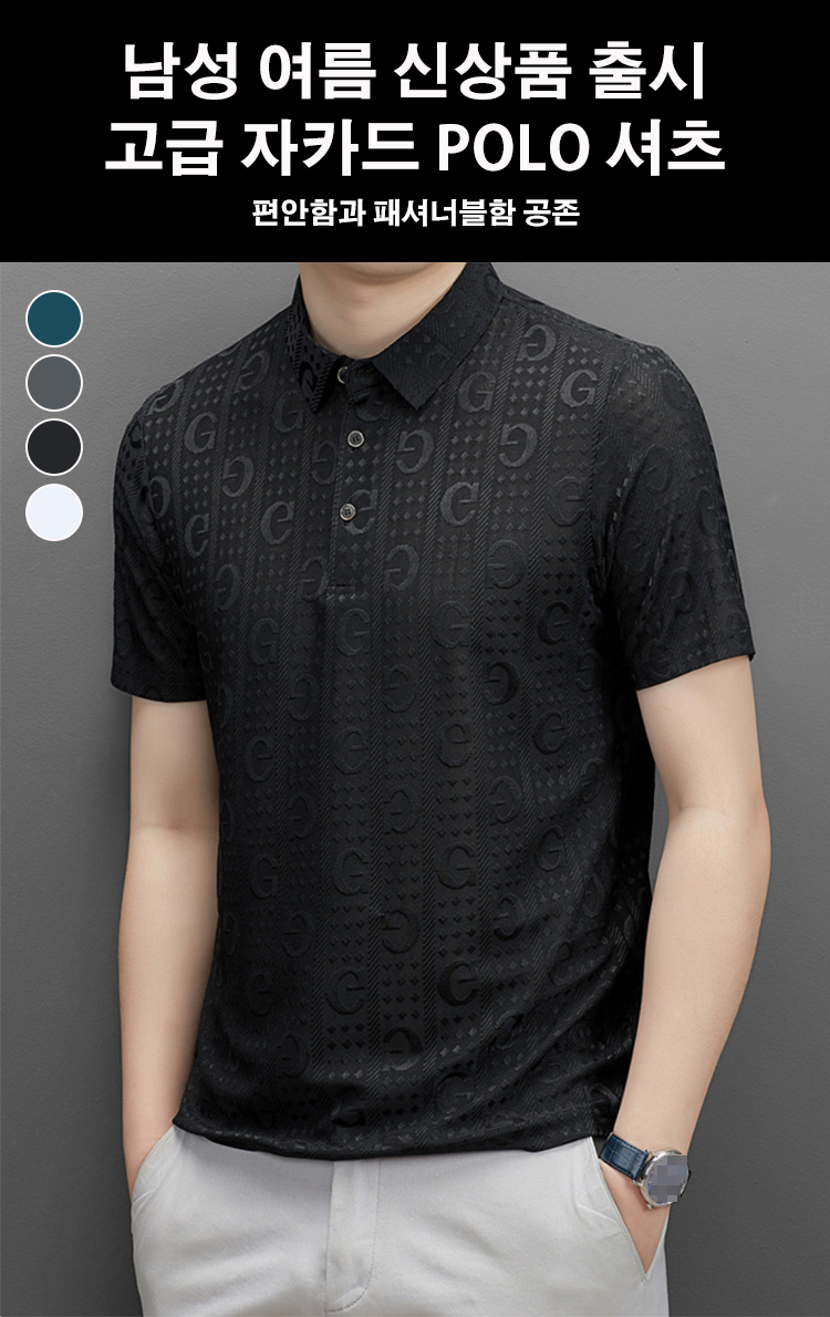 남자 여름용 고급 자카드 폴로 셔츠